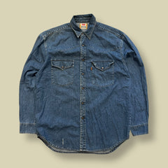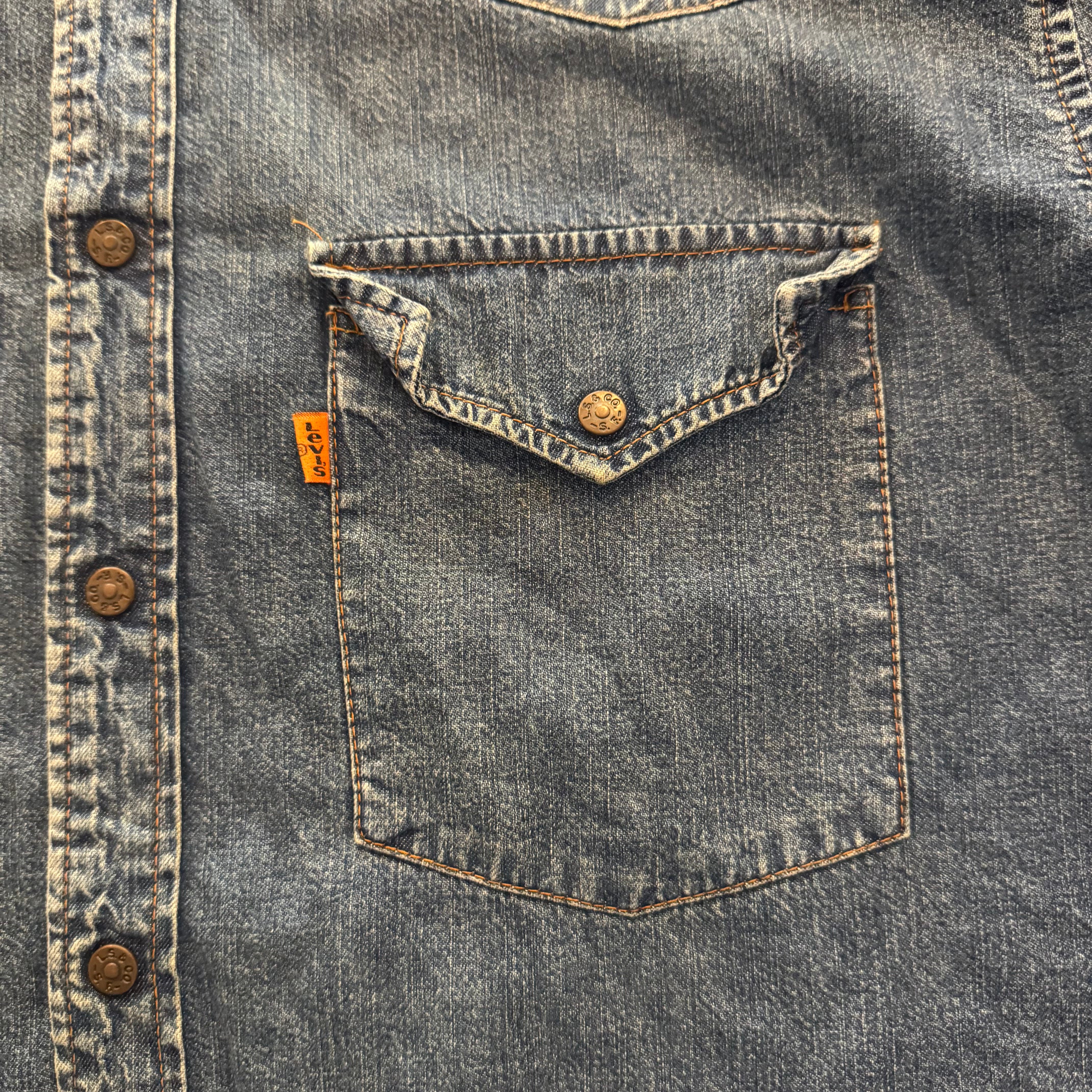CAMICIA WESTERN DENIM ORANGE TAB BLU - L