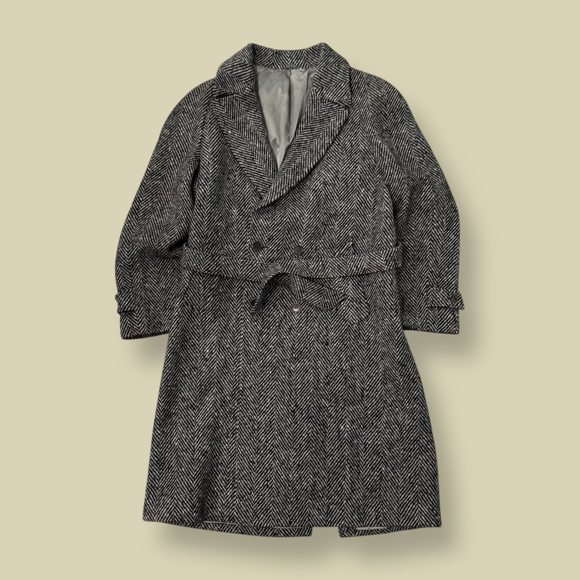 Cappotto Spigato Grigio/Nero Doppio Petto